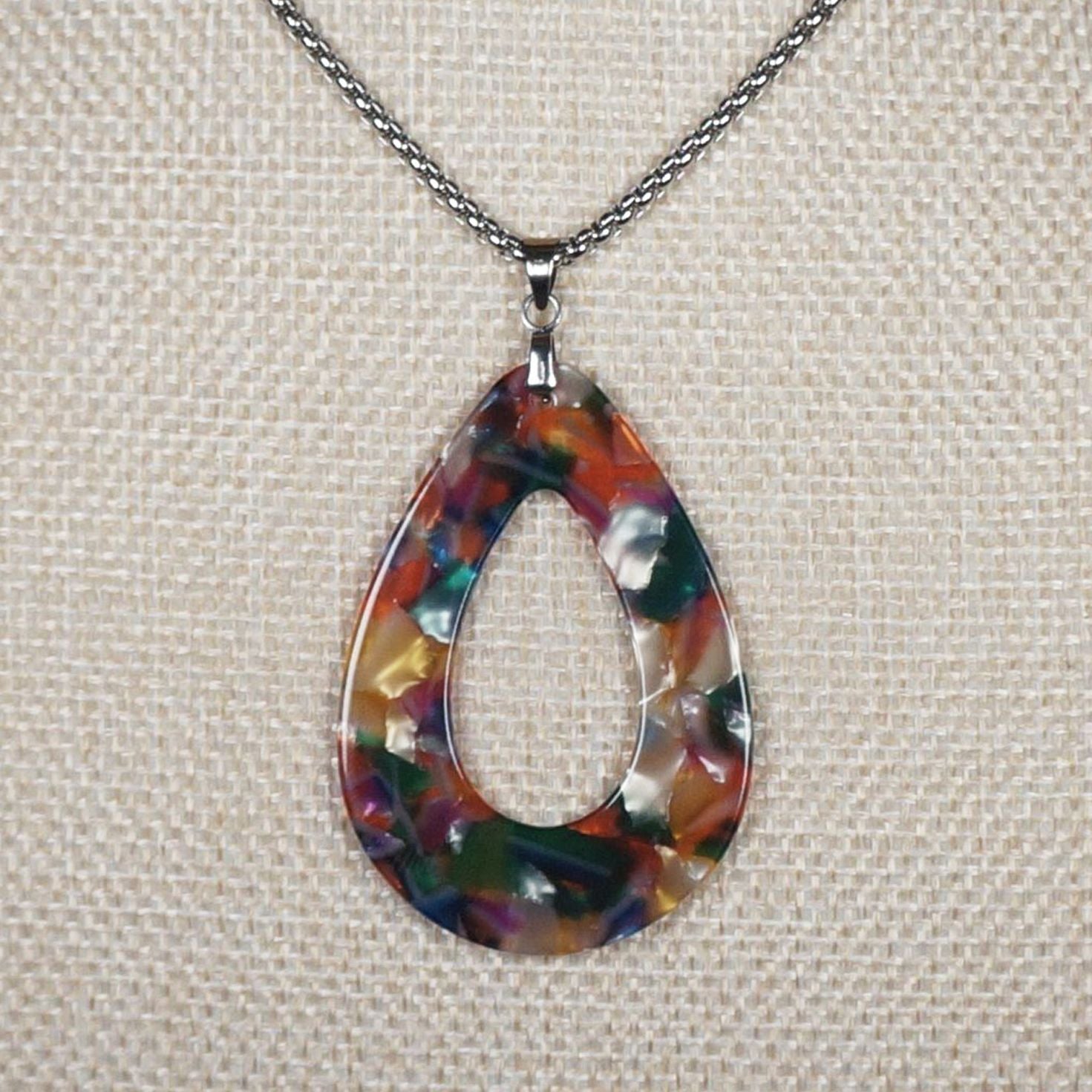 Acrylic Rainbow Teardrop Pendant, Stainless Steel Chain Necklace, Length Choices, Gift for Her