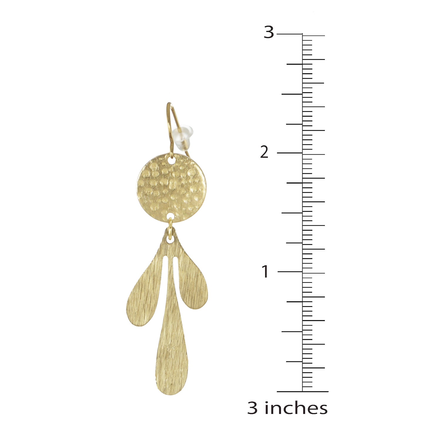 These pretty brass earrings feature brushed gold triple petal drops hanging from textured gold coin shaped beads. They catch the light as they dangle around. They are sure to compliment many outfits. These are extremely light weight and comfortable to wear.