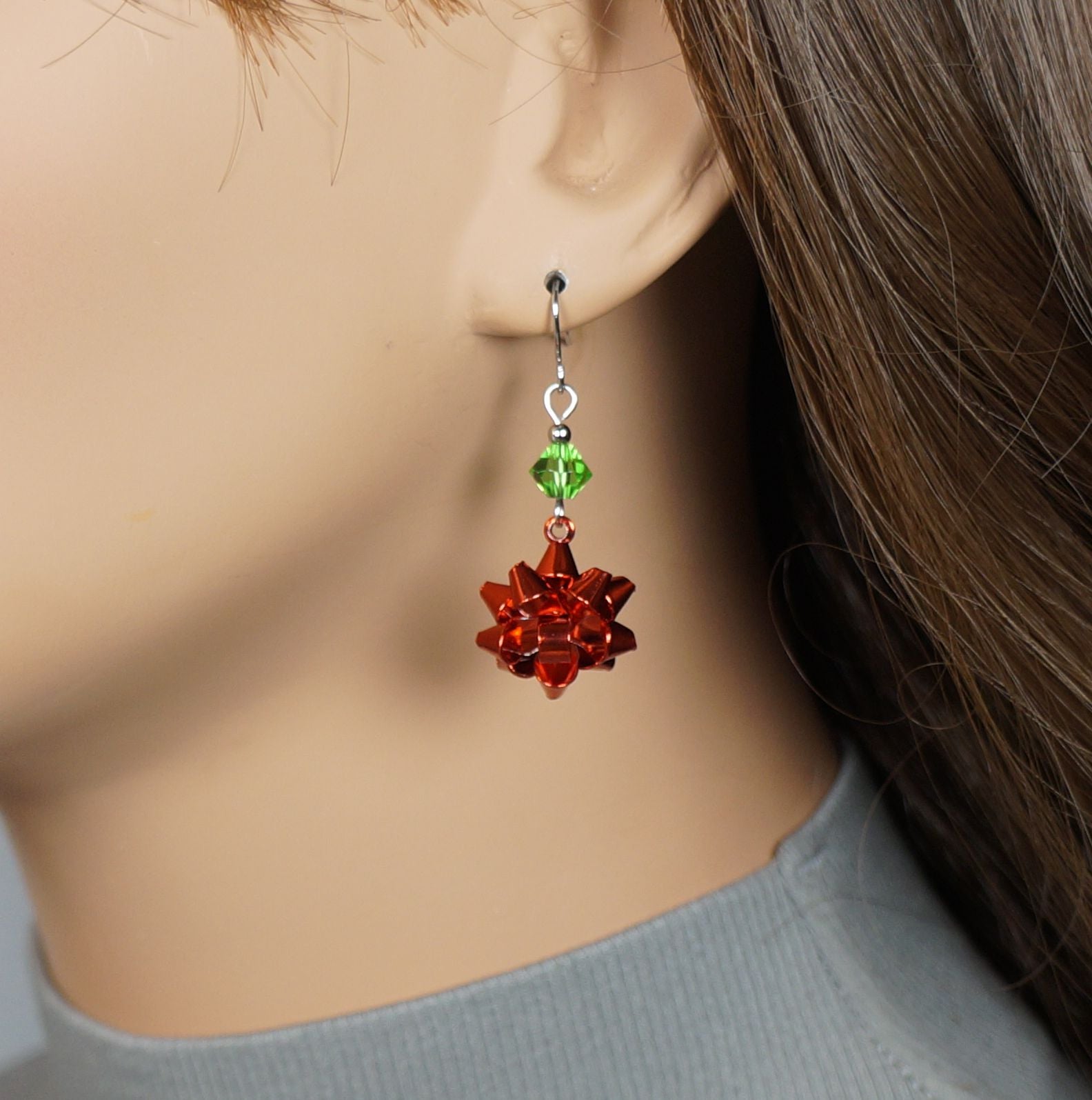Color Choices, Holiday Bow Earrings with Swarovski Crystals, Hypoallergenic Ear Wires