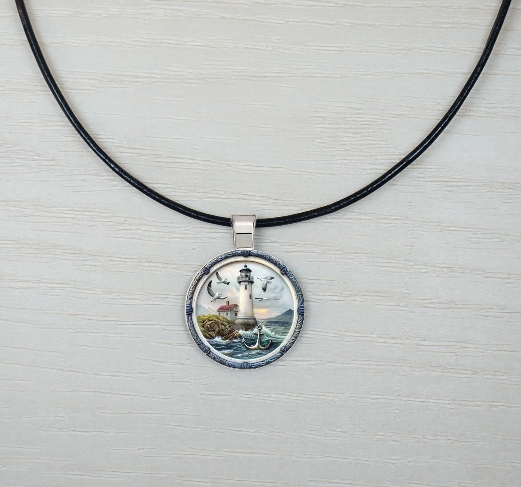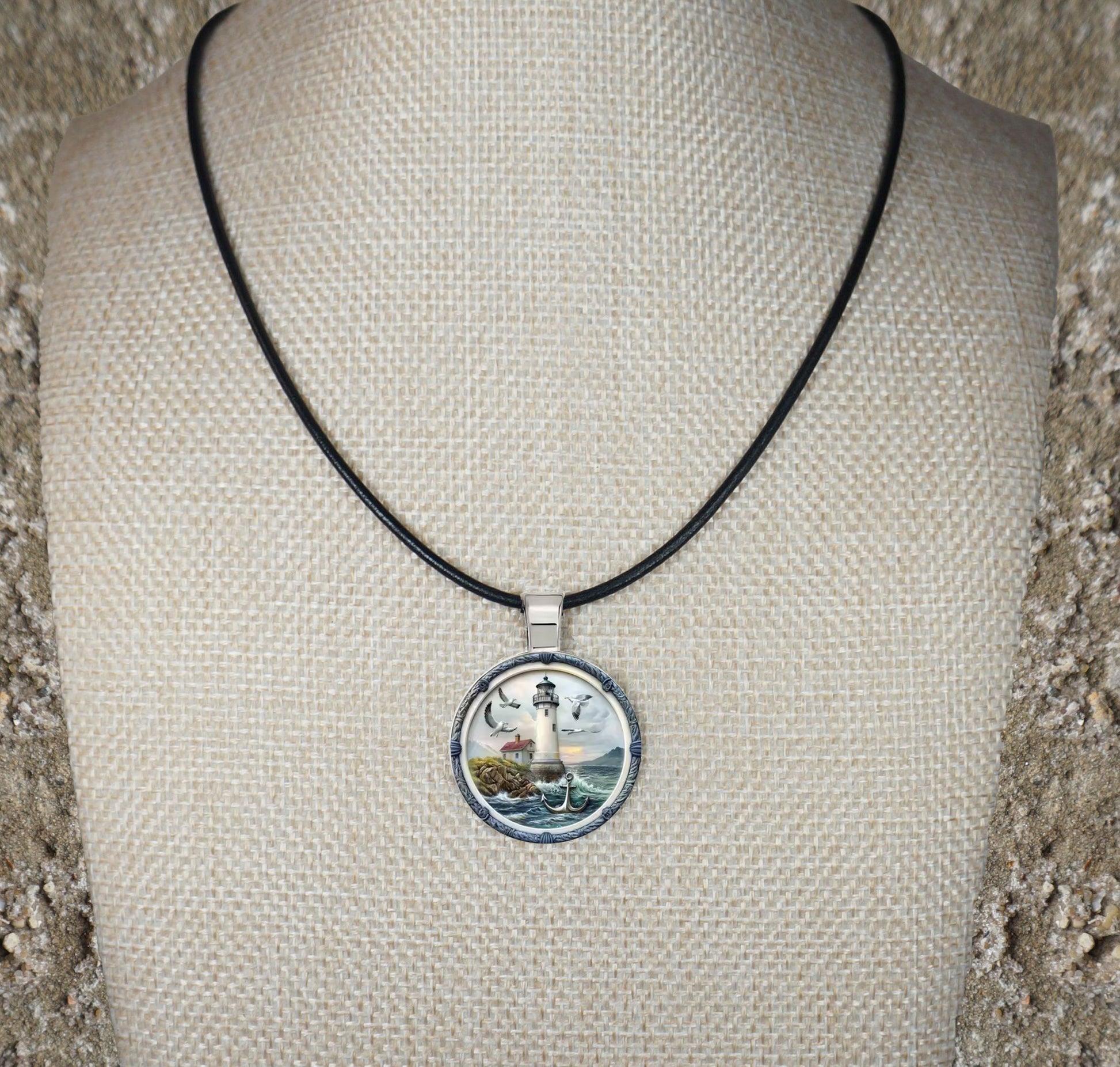 Navigate the seas of style with this intricate lighthouse pendant necklace—a nautical treasure for any adventure seeker. Crafted with meticulous detail, the striking lighthouse design captures the romance of coastal living and serves as a beacon of bold personal style. Suspended from a sleek black leather cord available in multiple lengths, it's the perfect accessory for those who love the ocean's call. Whether you're gifting it to a sailing enthusiast, beach lover, or anyone who appreciates maritime charm, this piece makes waves as a thoughtful present for her or him. I also sell this pendant on a stainless steel chain.