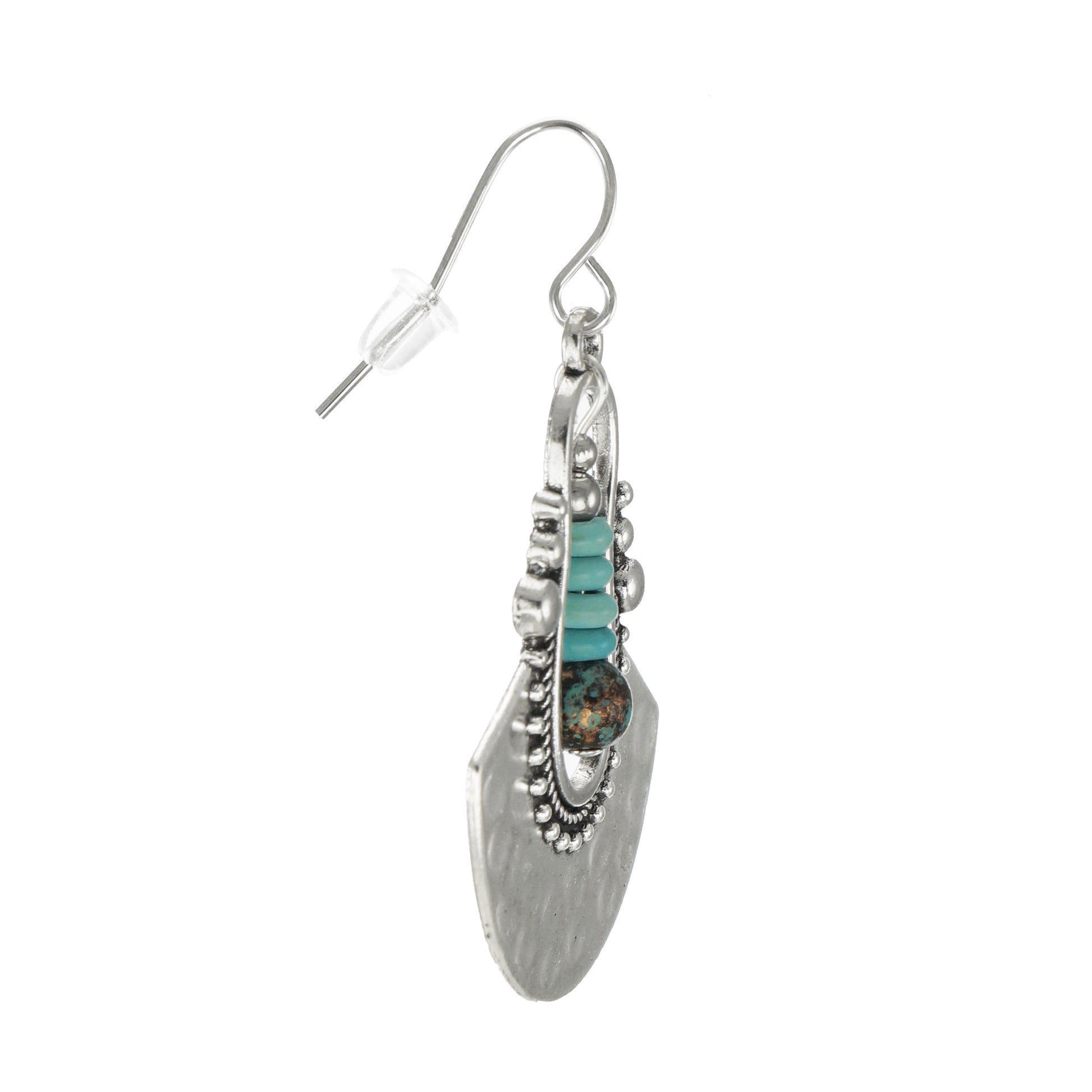 Rustic Silver and Turquoise Boho Ethnic Dangle Earrings, Platinum Ear Wires