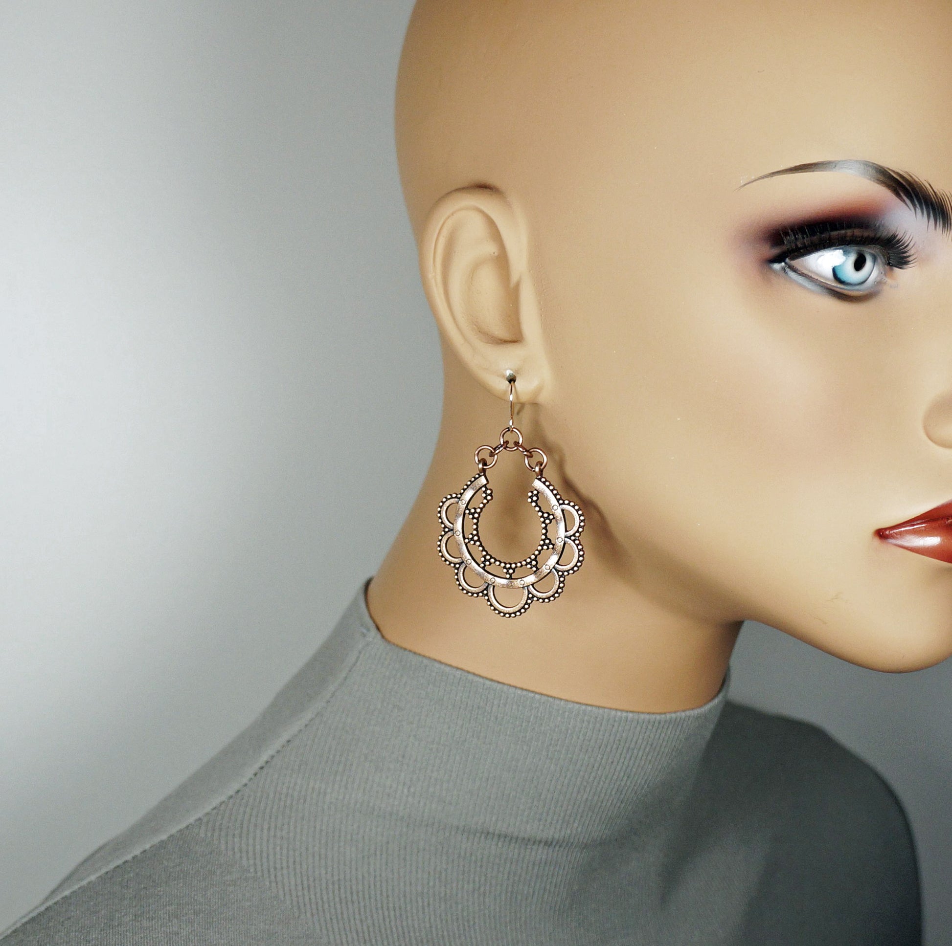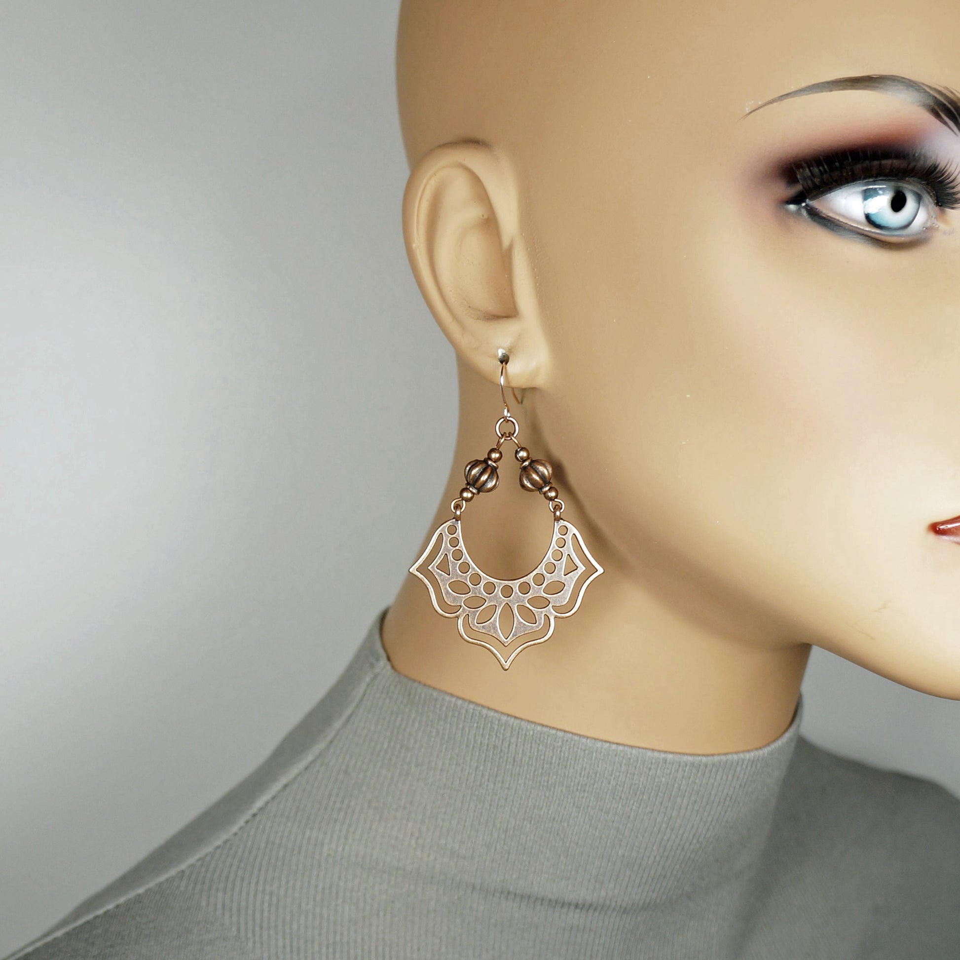 Set of 3 Pair Handmade Boho Copper Vintage Statement Dangle Earrings, Rose Gold Earwires (Copy)