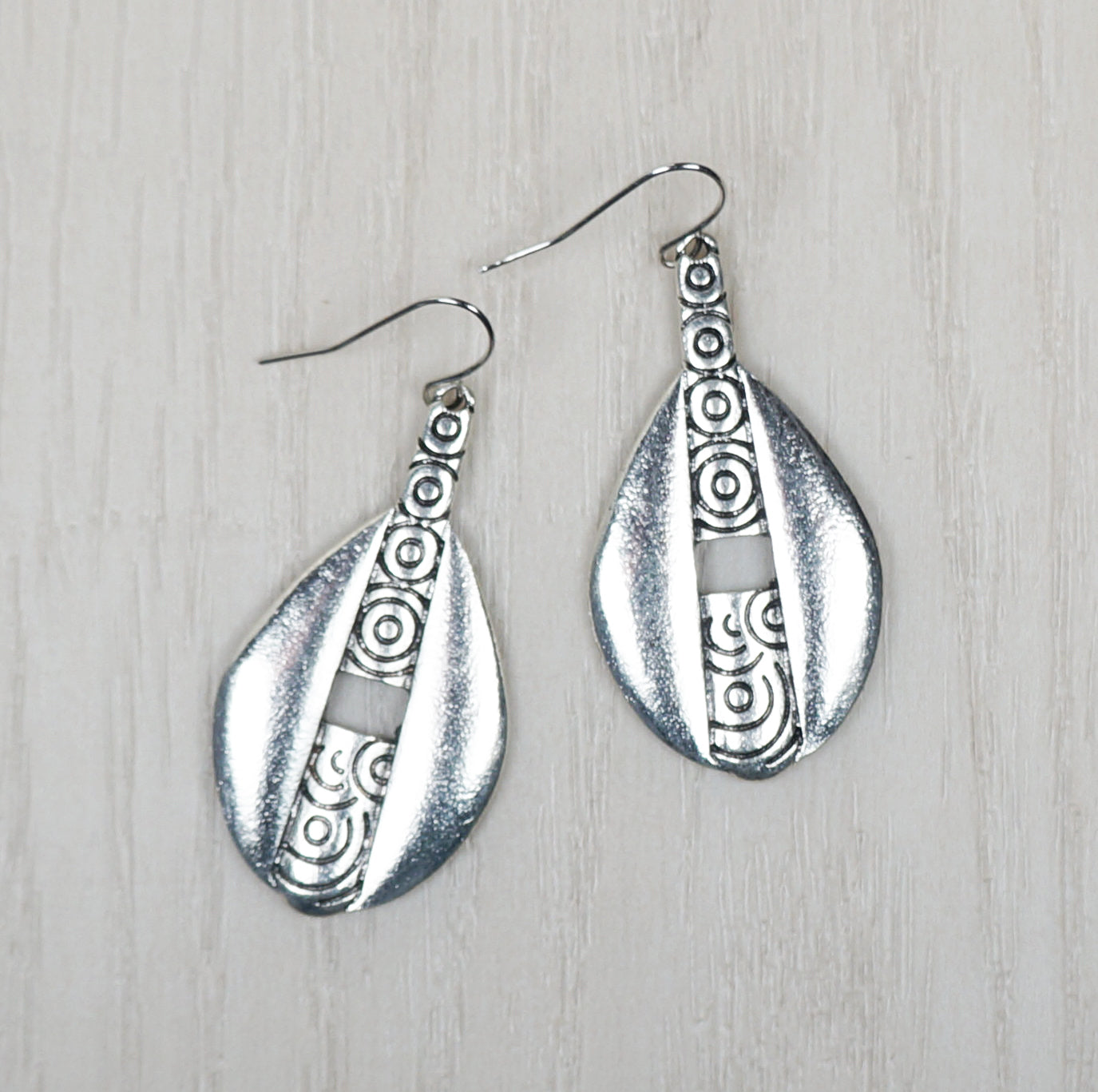 Make waves with these mesmerizing silver teardrop earrings featuring intricate swirl spirals that add texture and dimension to your look. The rustic detailing gives them an artisanal vibe that feels both timeless and totally on-trend. Each spiral catches light differently, creating a subtle shimmer that draws compliments without screaming for attention. Platinum ear wires deliver durability and elegance, so these beauties are built to last through countless adventures. Whether you're dressing up or keeping it casual, these statement makers bring just the right amount of boho magic to any outfit. Perfect for gifting to someone who appreciates handcrafted charm and understated sophistication.