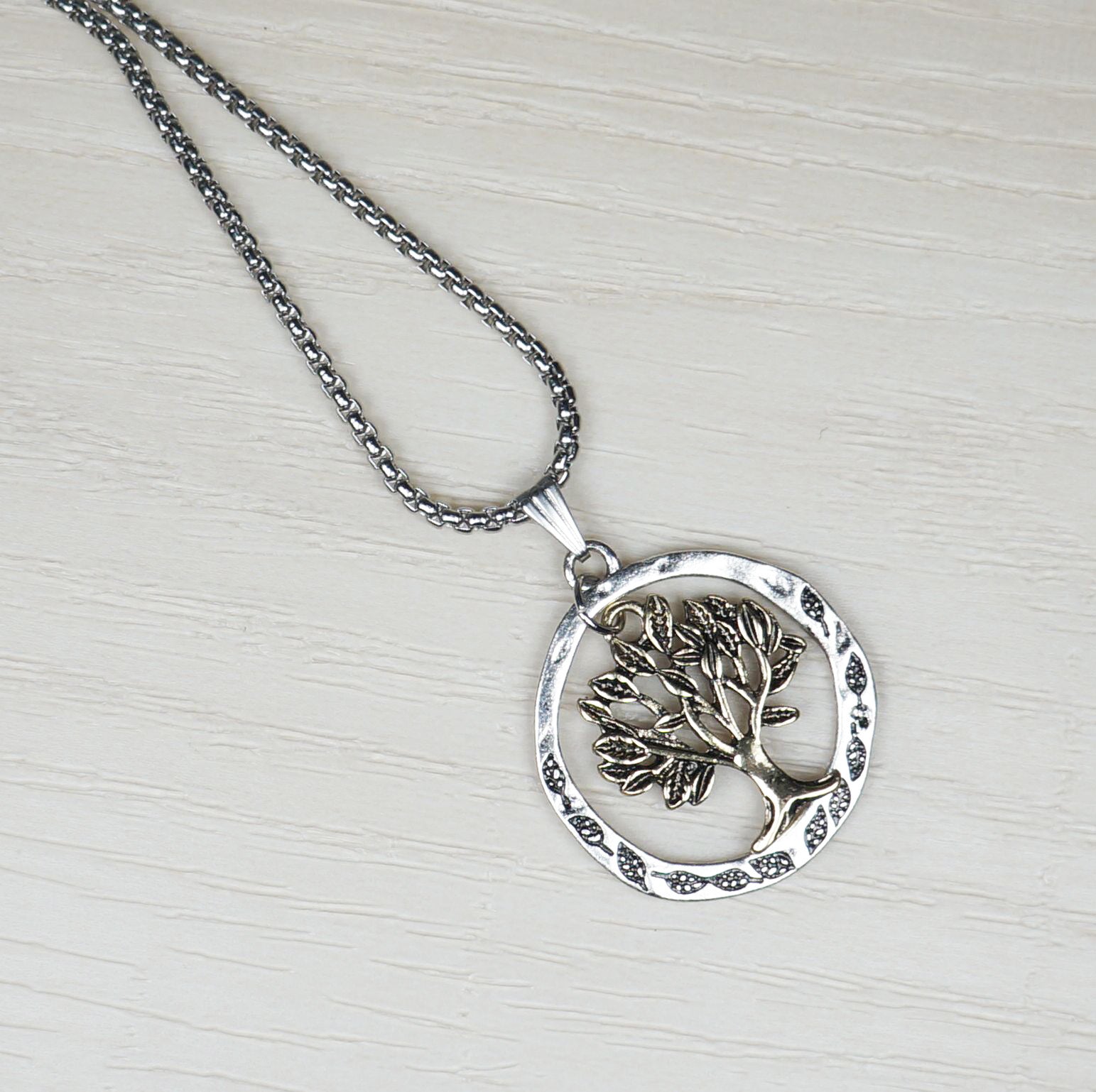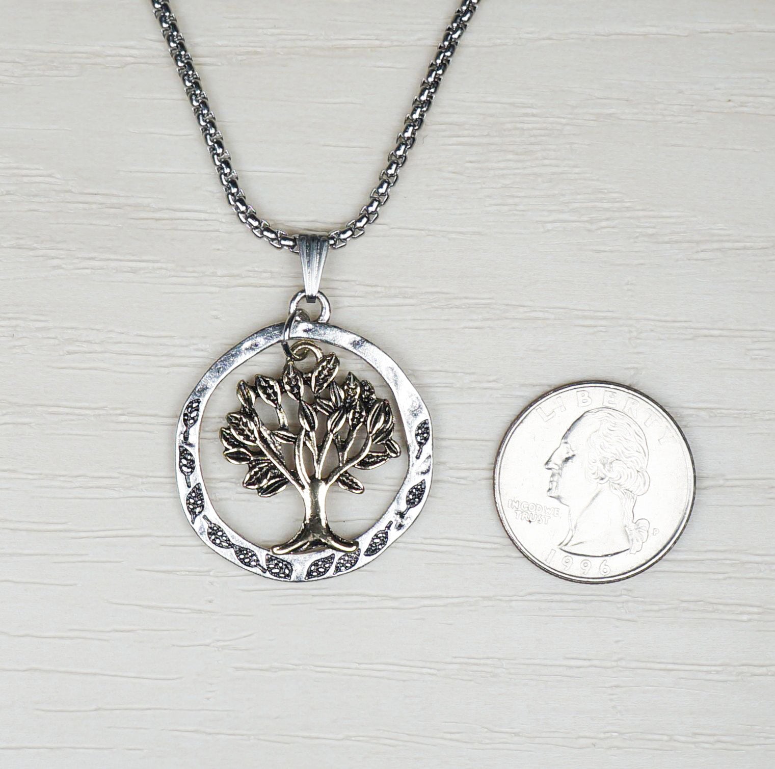 Tree of Life Gold & Silver Circle Pendant, Stainless Steel Chain Necklace, Length Choices
